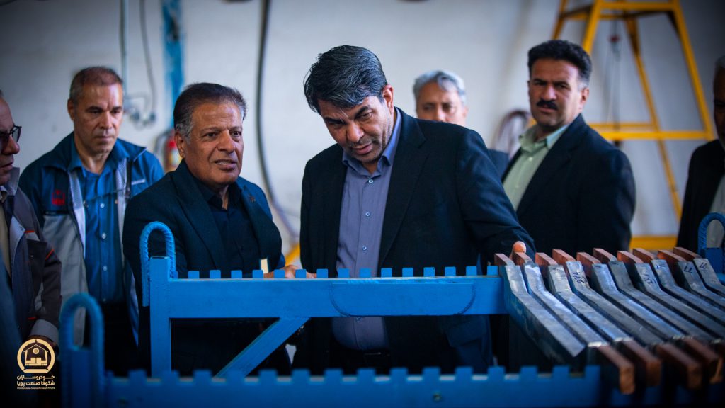 The visit continued at Nano Sakhtar Shokoufa Sanat, where the delegation observed the production of lead-based nanocomposite anodes and stainless steel blanks used in industries and refineries, as well as connections for non-ferrous metals, all developed using advanced technology.