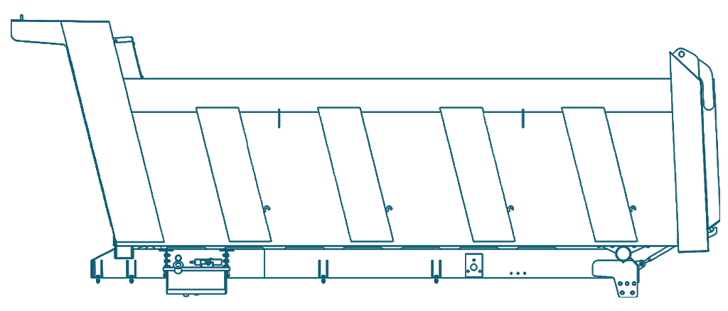 اتاق بار از فولاد با استحکام بالا S500 – کف: ورق 8 میلیمتر تقویت شده با رام عرضی و طولی – دیواره طرفین: ورق 6 میلیمتر تقویت شده با ستون مورب – دیواره جلو: ورق 8 میلیمتر – درب عقب: ورق 5 میلیمتر به صورت دو حالته