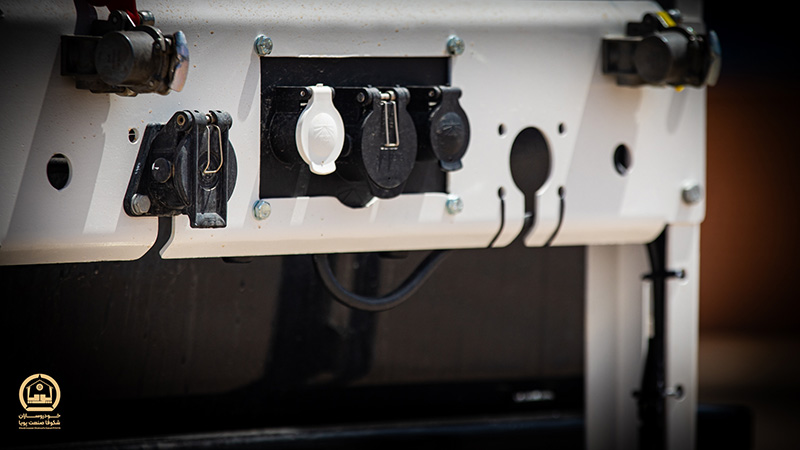 دارای دو سوکت 7 پین و یک سوکت 15 پین با خط برق 24 ولت، چراغ های عقب و بغل مطابق با استاندارد UNECE R48، E20 و E9 اروپایی مجهز به SMCG، برند ASPOCK اتریش