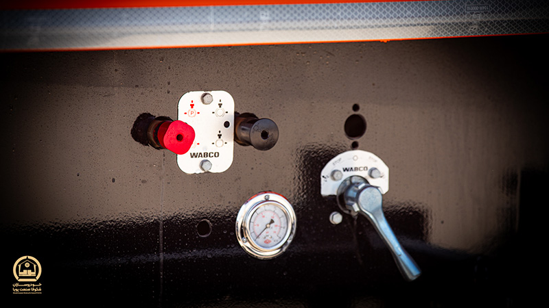 4 عدد بوستر دوبل برای دو محور عقب و 2 عدد بوستر تک برای محور بالارونده، سیستم الکترونیکی ترمز EBS (ترمز ضد قفل ABS و سامانه ضد واژگونی RSP) از معتبرترین برندهای اروپایی (KNORR و WABCO) در دو نوع ترمز دیسکی و کاسه ای بر طبق استاندارد ECE-R13، سیستم قفل پارک، ترمز اضطراری ، سیستم تنظیم ارتفاع خودکار